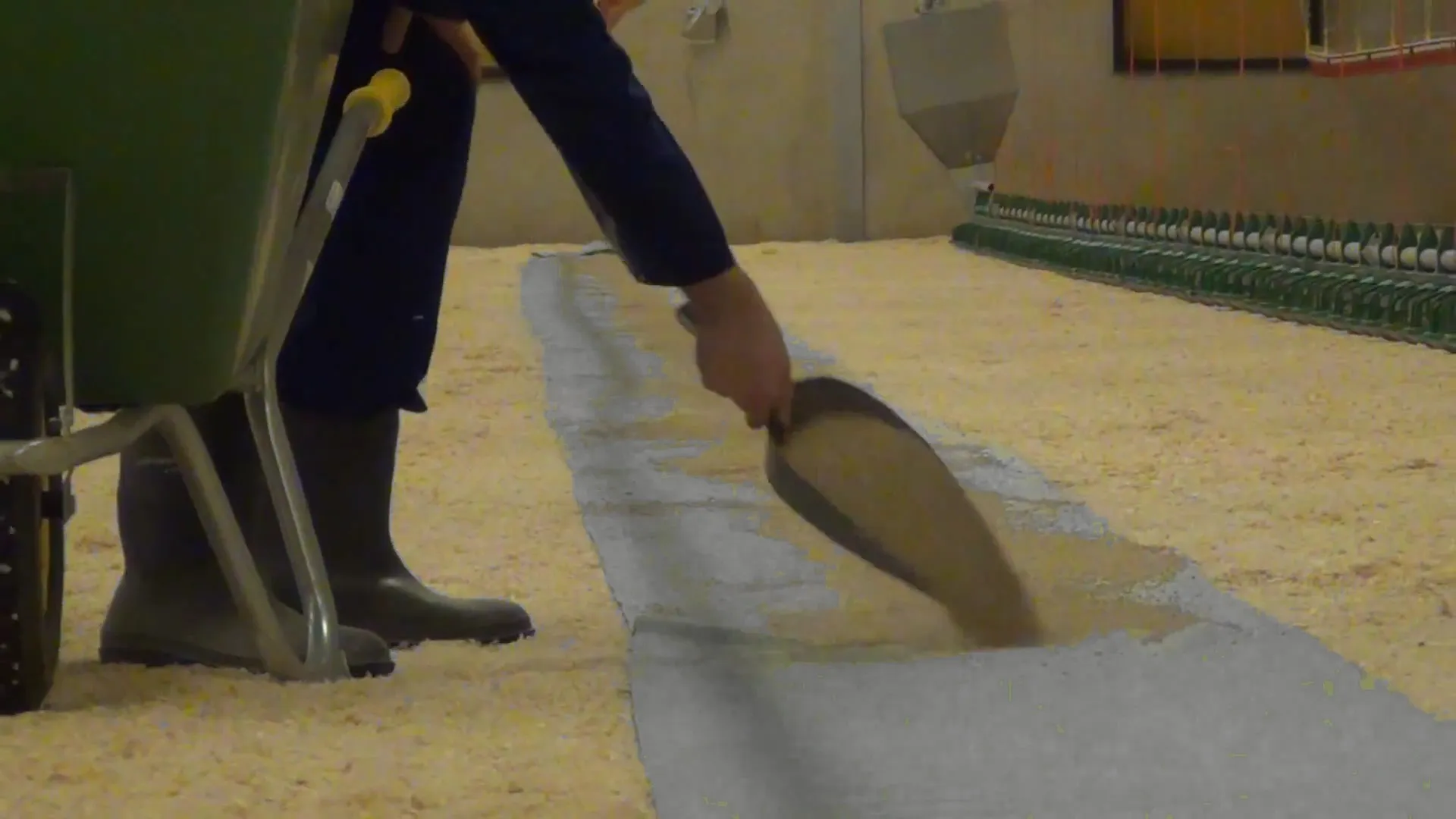 Chickpaper, a paper with high rustling properties, is placed under each drinking line. As day-old chicks walk on the paper, they produce sound, attracting the other chicks. This process guides all day-old chicks to the water within four hours of arrival, ensuring they start drinking promptly. By placing feed on the paper, not only the drinking lines are easily accessible but the chicks also have easy access to food. Chickpaper quickly absorbs bird droppings, improving hygiene and reducing the risk of yolk sac infections.
